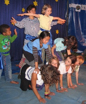 einfachen Holzbank. Das Clown-Sein schliesslich fängt an mit dem Sinn für das Komische. Aus diesen einfachen Elementen lässt sich schon ein Zirkusprogramm zusammenstellen. |
