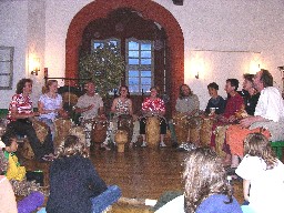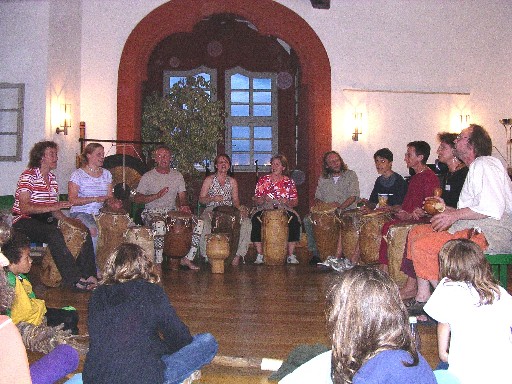 Tanzen Afrikanisches Trommeln Beim Artival 2004 wechselten wir von den Guinea-Djembes zu den Kpanlogo-Trommeln aus Ghana. Wir freuen uns, dass wir Emmanuel Gomado auch für 2005 wieder gewinnen konnten.