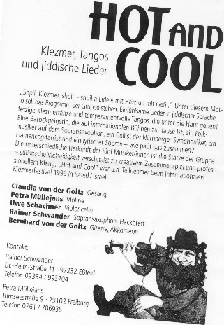Konzert: Hot & Cool in der ehemaligen Synagoge, Wenkheim, November 1999 |